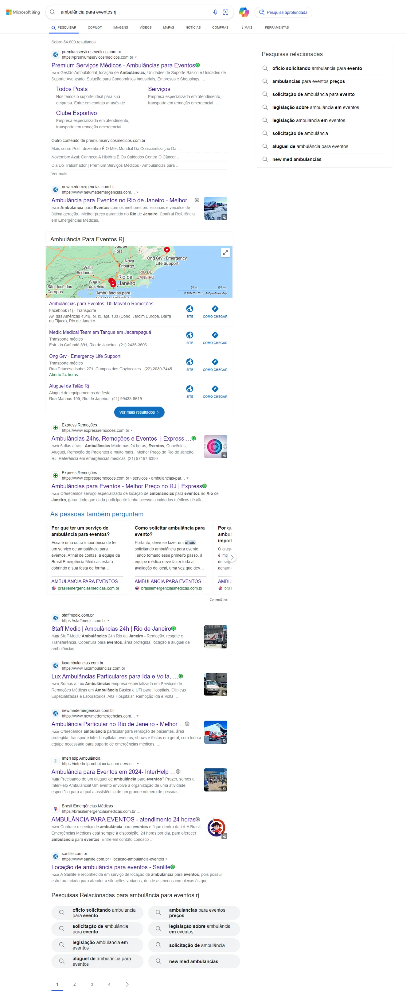 Para consultas relacionadas a empresas ou serviços locais, o Google frequentemente exibe um “pacote local” que inclui um mapa e uma lista de três ou mais empresas ou locais relevantes na área. Aparecer nessa seção é vital para empresas com atuação local, e isso pode ser otimizado por meio de SEO local e Google Meu Negócio.
