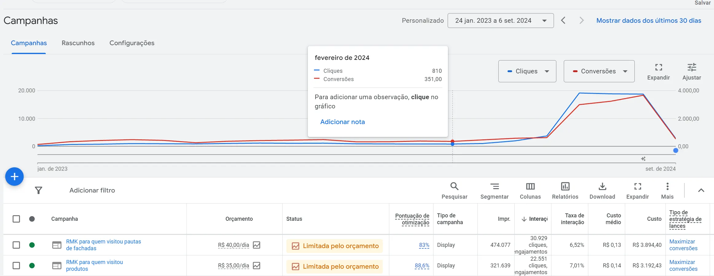 Começamos com o remarketing, listas de clientes, verdadeiro ouro para campanhas de segmentações diversas, awareness, etc…